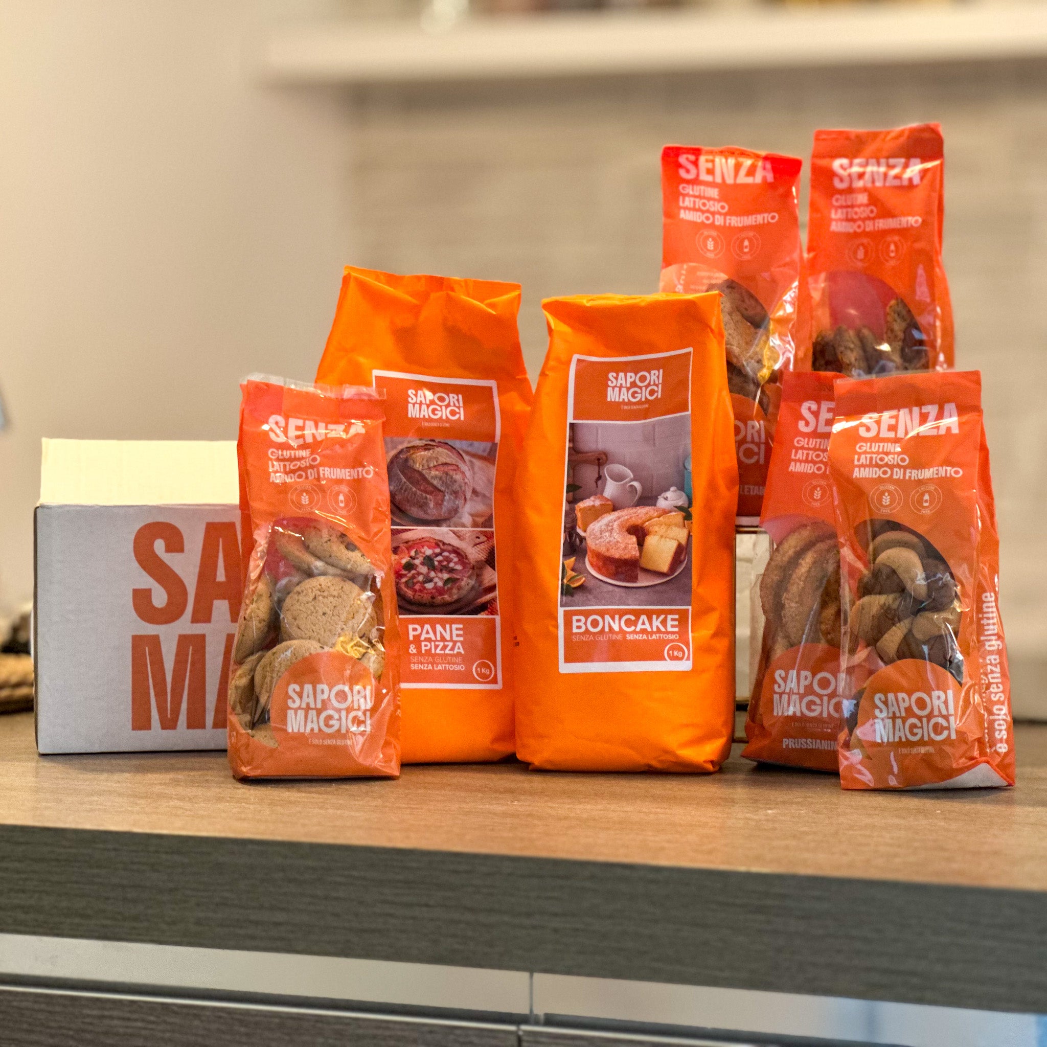 Fai il pieno dei nostri Sapori Magici. Questa bellissima MIXED BOX contiene i seguenti prodotti dolci e salati senza glutine, senza lattosio e senza amido di frumento: