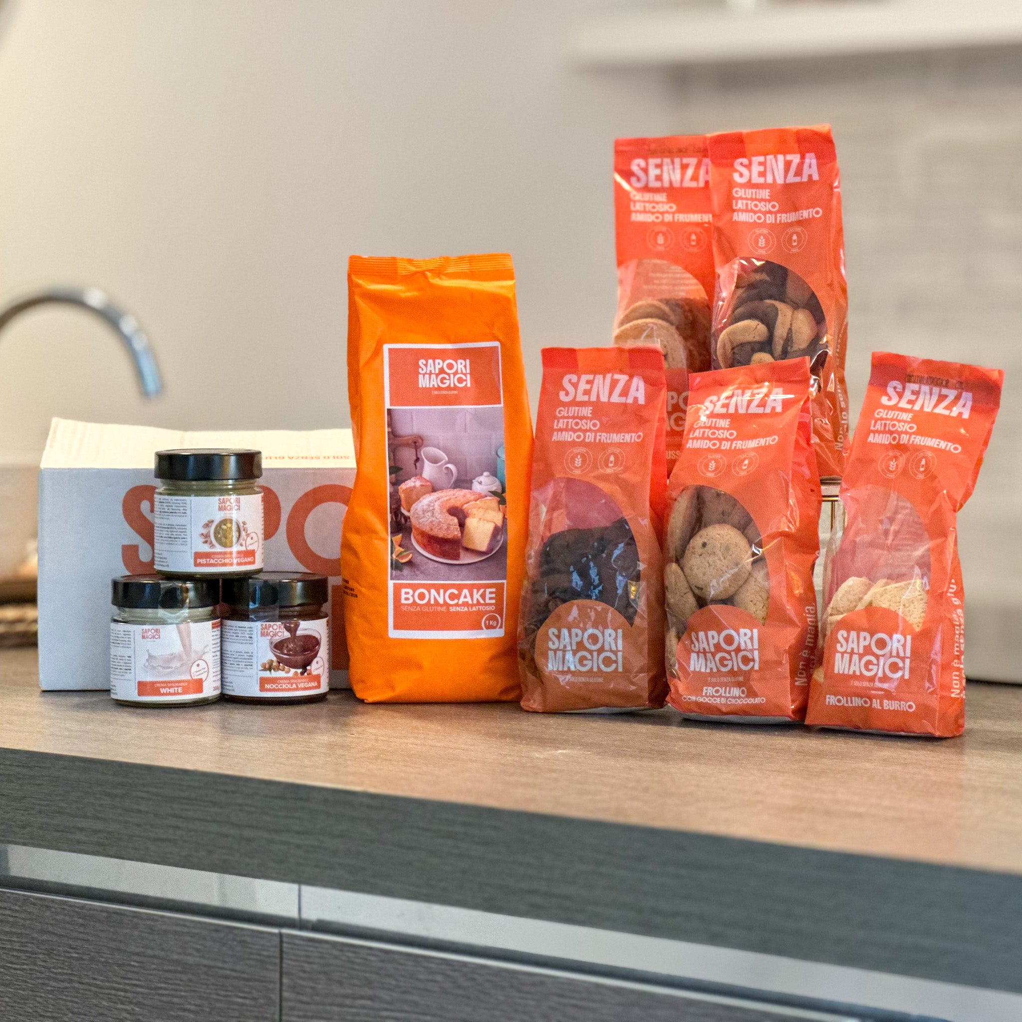 Fai il pieno dei nostri Sapori Magici. Questa bellissima BOX contiene i seguenti prodotti senza glutine, senza lattosio e senza amido di frumento: